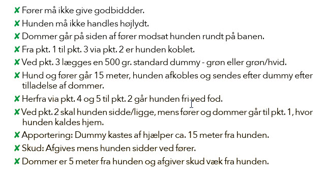 - Fører selv, der kaster dummyen ved nummer to apportering, altså som ved den "gamle" brugsprøve, og ikke som beskrevet i uddraget fra retrieveren, som ses ovenfor.